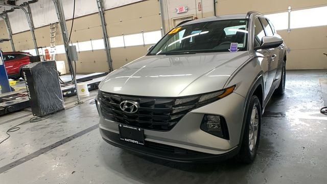 Shimmering Silver 2023 Hyundai Tucson SEL AWD 8-Speed Automatic with SHIFTRONIC 2.5L I4 DGI DOHC 16V LEV3-ULEV70 187hp AWD, 3.648 Axle Ratio, 4-Wheel Disc Brakes, 6 Speakers, ABS brakes, Air Conditioning, Alloy wheels, AM/FM radio: SiriusXM, Apple CarPlay & Android Auto, Auto High-beam Headlights, Brake assist, Bumpers: body-color, Cargo Cover, Cargo Tray, Carpeted Floor Mats, Delay-off headlights, Driver door bin, Driver vanity mirror, Dual front impact airbags, Dual front side impact airbags, Electronic Stability Control, Emergency communication system: Blue Link Connected Car Service (3-year complimentary subscription), Four wheel independent suspension, Front and Rear Mudguards, Front anti-roll bar, Front Bucket Seats, Front Center Armrest, Front reading lights, Fully automatic headlights, H-Tex Seat Trim, Heated door mirrors, Heated Front Bucket Seats, Heated front seats, Illuminated entry, Low tire pressure warning, Occupant sensing airbag, Option Group 01, Outside temperature display, Overhead airbag, Overhead console, Panic alarm, Passenger door bin, Passenger vanity mirror, Power door mirrors, Power driver seat, Power Liftgate, Power steering, Power windows, Radio data system, Radio: AM/FM/HD/SiriusXM Audio System, Rear anti-roll bar, Rear Bumper Applique, Rear seat center armrest, Rear window defroster, Rear window wiper, Remote keyless entry, Roof rack: rails only, Security system, Speed control, Split folding rear seat, Spoiler, Stain & Odor Resistant Cloth Seat Trim, Steering wheel mounted audio controls, Tachometer, Telescoping steering wheel, Tilt steering wheel, Traction control, Trip computer, Turn signal indicator mirrors, Variably intermittent wipers, Wheels: 17" x 7.0J" Alloy.