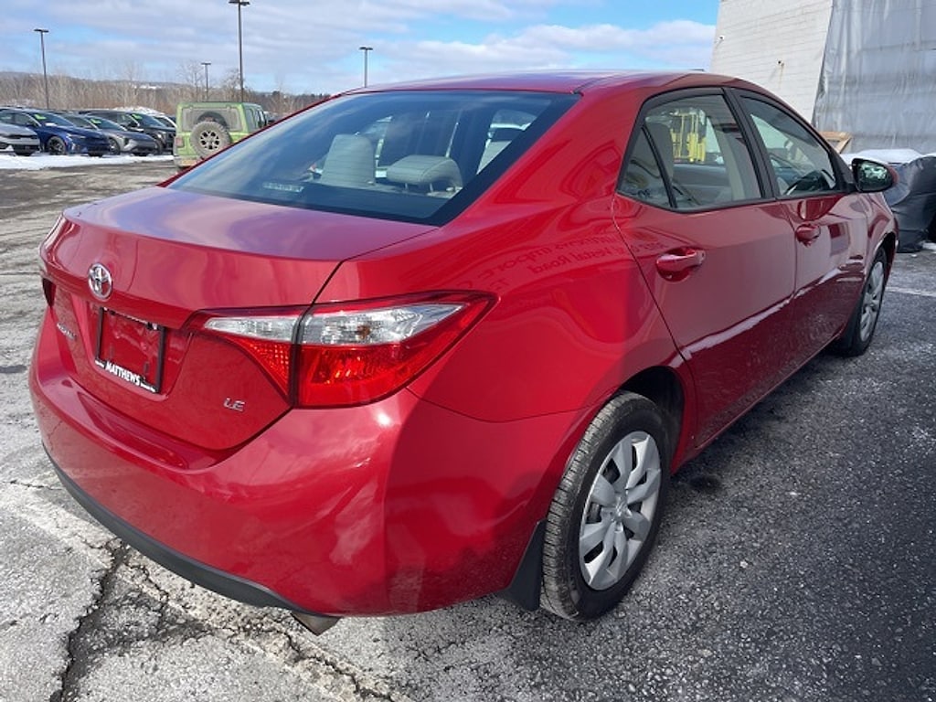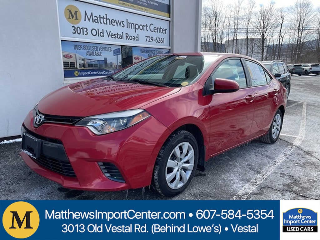 Matthews Import Center promises each customer a thorough and confident 120-point inspection on our used inventory guaranteeing a relaxing and peace-of-mind experience. We are located behind Lowes in Vestal NY. Or call us at (607) 729 - 6261Matthews Import Center3013 Old Vestal RoadVestal NY 13850. Red 2016 Toyota LE Corolla FWD CVT 1.8L I4 DOHC Dual VVT-iOdometer is 25831 miles below market average! 29/38 City/Highway MPGAwards: * 2016 KBB.com 5-Year Cost to Own Awards * 2016 KBB.com 10 Best Used Compact Cars Under $15000 * 2016 KBB.com Best Buy Awards Finalist